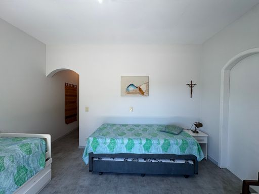 No andar superior ficam as quatro suítes amplas, 3 com porta balcão que dão acesso às varandas, proporcionando excelente circulação de ar e iluminação.Os quartos são grandes, alguns com armários embutidos, e todos têm espaço suficiente para famílias grandes ou hóspedes.