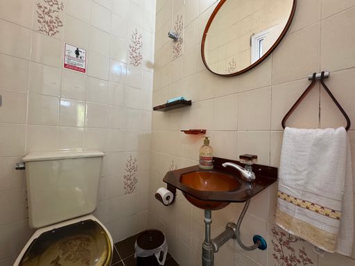 No térreo também está o lavabo, discreto e funcional, e a cozinha, bem ventilada, com armários planejados e balcões em granito. Há ainda despensa, area de serviço acesso direto para o quintal lateral e que conta com dependência completa de empregada.