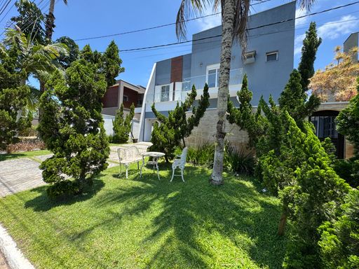 A fachada conta com um jardim arborizado, gramado bem cuidado e vagas para até quatro veículos. O acesso é muito agradável e transmite sensação de privacidade e acolhimento.
