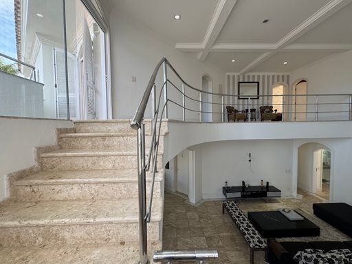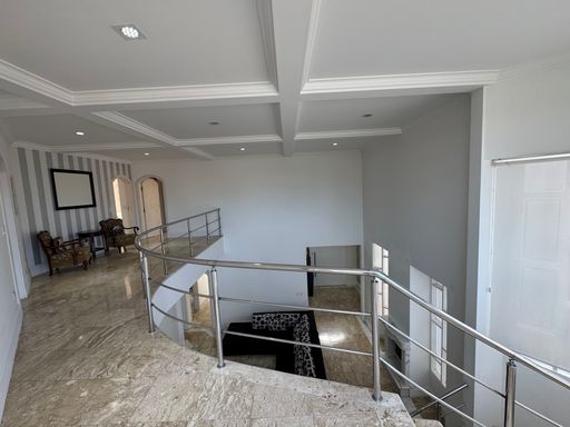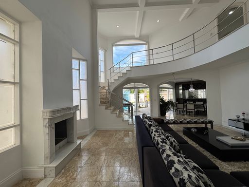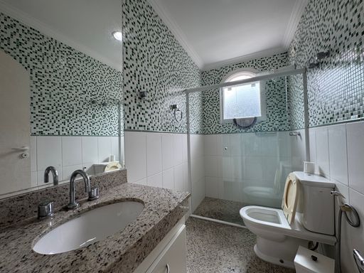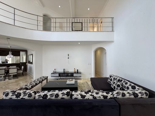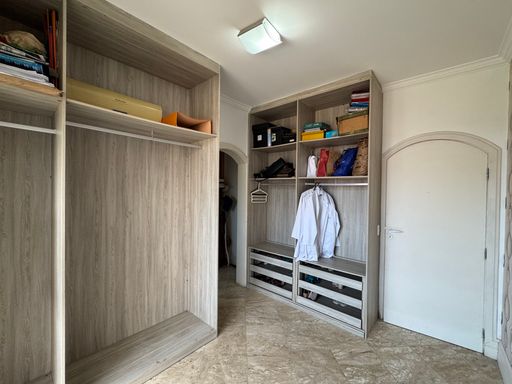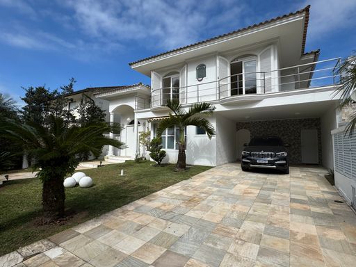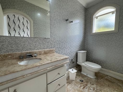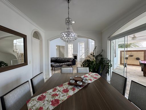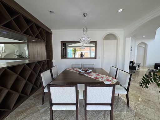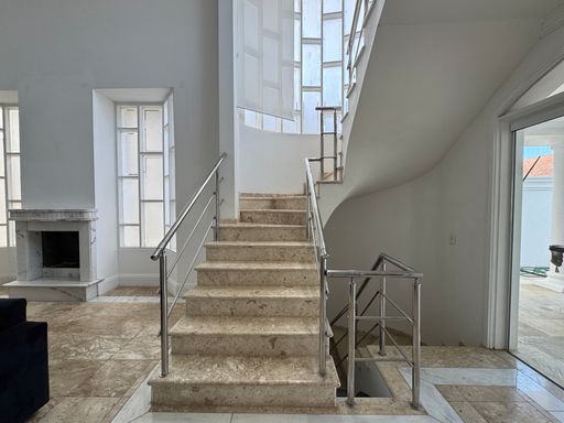 O sobrado possui uma fachada imponente em estilo tradicional, com jardim amplo e vagas para até 4 carros. A entrada social recebe com um hall iluminado e integração direta para os principais ambientes da casa.