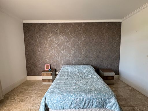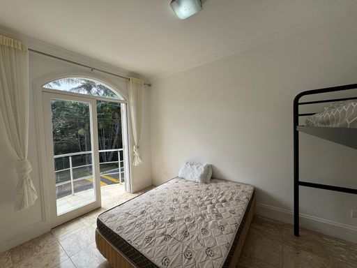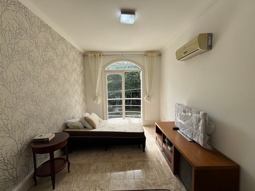 No pavimento superior, as demais suítes são amplas e bem iluminadas, incluindo a suíte master com espaço generoso e vista para o verde.