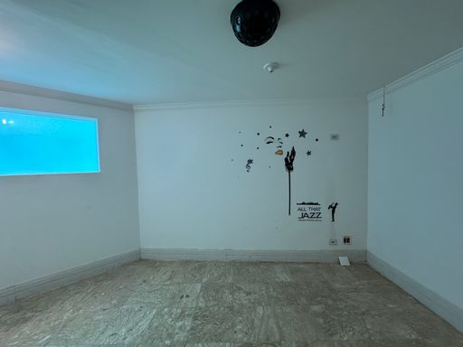 No nível inferior, a casa conta com um cômodo espaçoso e climatizado, ideal para ser utilizado como home theater, sala de jogos, brinquedoteca ou espaço íntimo. O ambiente possui uma charmosa vista para a piscina, criando um visual aconchegante.