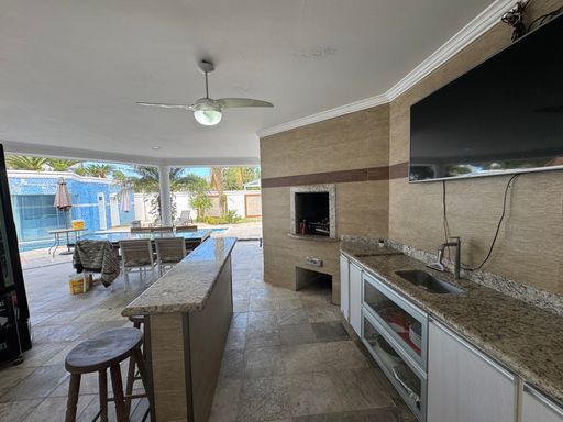 A cozinha é espaçosa, funcional e se conecta diretamente à área gourmet envidraçada, criando um fluxo perfeito entre dentro e fora. O espaço gourmet é ideal para reuniões, almoços e churrascos em família.
