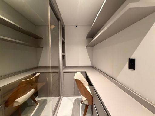 Ao lado, um elegante espaço para adega de vinhos, que traz charme e sofisticação ao ambiente, ideal para apreciadores de bons momentos.