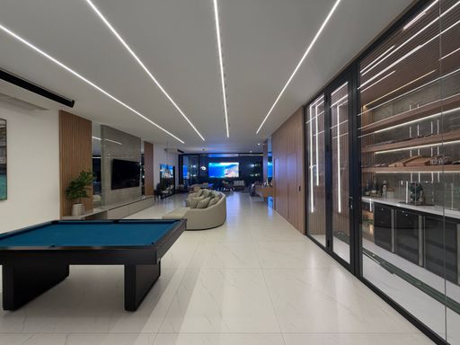 Em destaque está uma mesa de bilhar, criando um ambiente descontraído e perfeito para momentos de lazer e convivência.