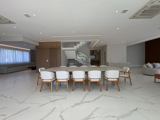 Sala de jantar com mesa para 12 lugares, perfeita para grandes recepções;