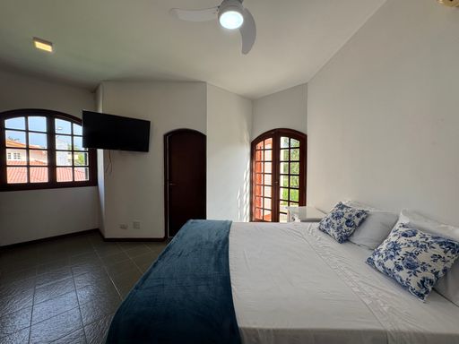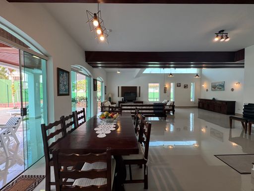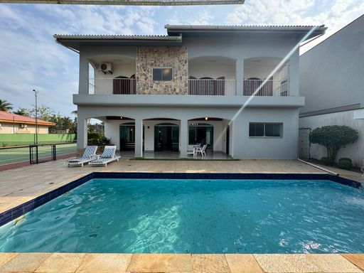A casa acomoda até 20 pessoas, tem 7 dormitórios sendo 5 suítes, e o melhor: duas suítes ficam no térreo, garantindo conforto pra todos.