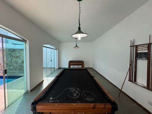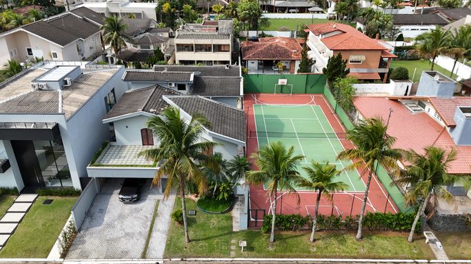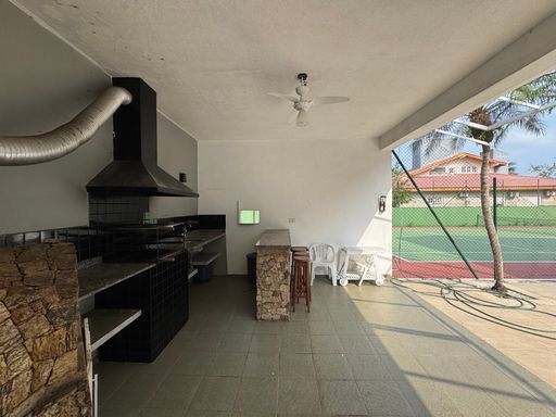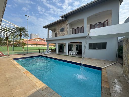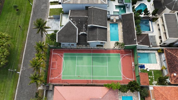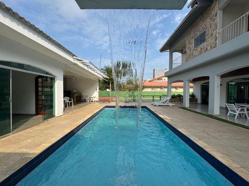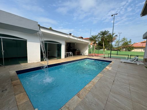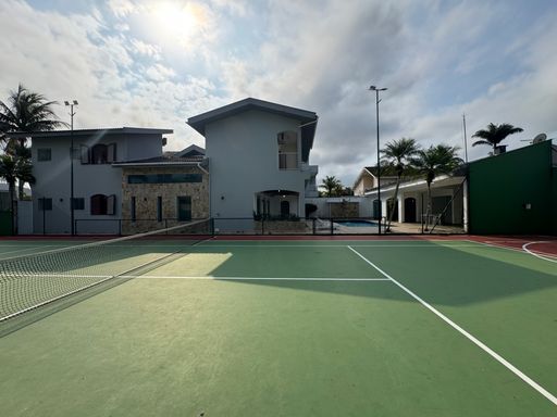Tem uma piscina maravilhosa com cascata, churrasqueira com forno de pizza, salão de jogos com mesa de bilhar e pimbolim, e uma quadra de tênis privativa pra quem gosta de esportes e diversão.