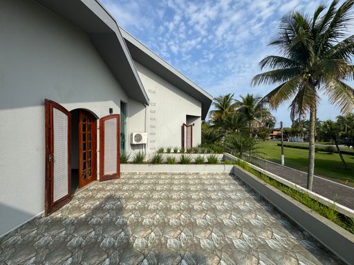 Além disso, a casa conta com varanda coberta, ar-condicionado em vários cômodos, e vaga pra até 6 carros.